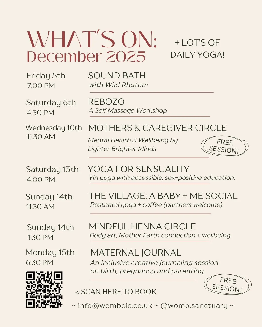From full moon gatherings, coffee morning, matrescence circles and much more. Check out our full workshop schedule here.